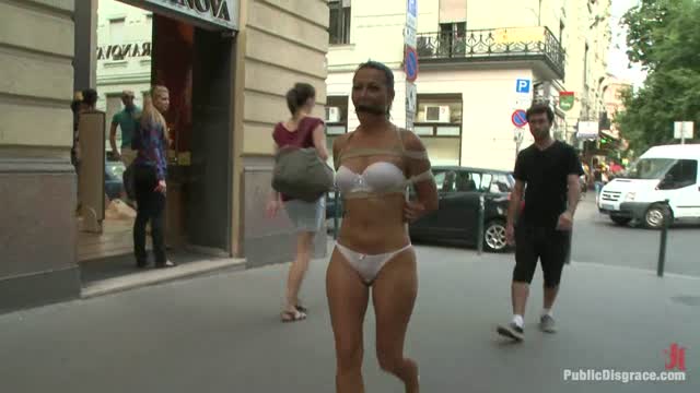 World Famous Dominatrix Down on her Knees Crawling Naked Through the Streets of Europe